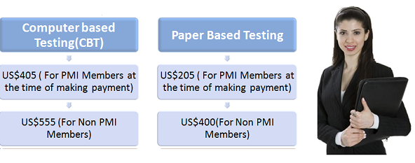 Fee for PMP Exam For PMI Member, The PMP® Exam Fee is US$405 for the computer based examination (CPT) and For non-members, the exam fee is US$555. The difference of US$150 is enough to pay for the first year of the PMI membership fee. It is always advisable to take membership as it has many benefits.
